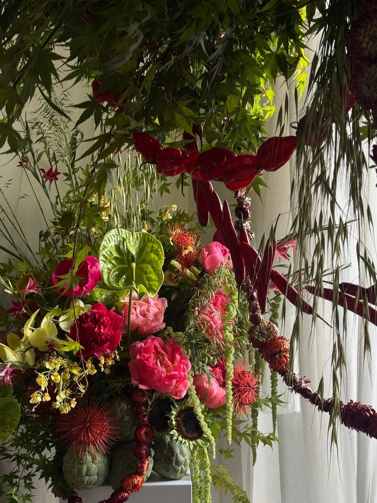 View fullsize All of the wonderful colours, garlands, flowers and vegetables for K+C πŸŒΆοΈπŸŒΈπŸ¦šπŸ«œπŸ…